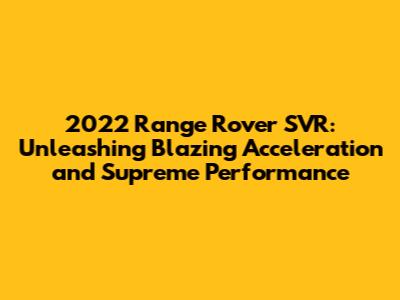 Alright, buckle up, guys, because we're diving deep into the 2022 Range Rover SVR – a beast that's all about blazing acceleration and outright performance. This isn't your grandma's SUV; it's a high-performance machine designed to thrill. We're going to break down everything you need to know about its acceleration capabilities, from the engine specs to how it feels behind the wheel. Prepare to be impressed because the SVR is a force to be reckoned with.