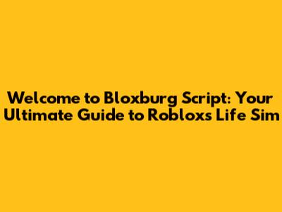 Bloxburg Script: Your Ultimate Guide To Roblox's Life Sim