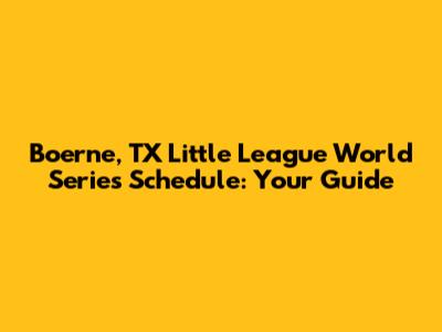 Boerne, TX Little League World Series Schedule: Your Guide