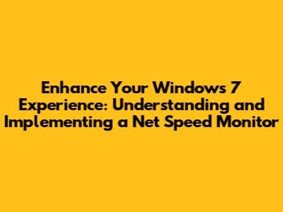 Boost Your Windows 7 Experience: Net Speed Monitoring Explained
