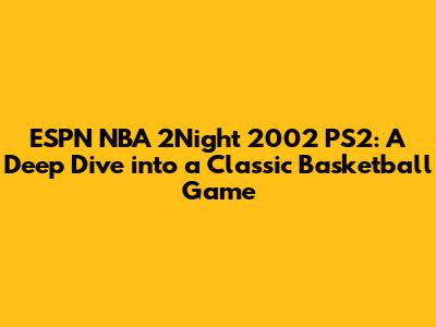 Hey guys! Let's take a trip down memory lane and dive deep into ESPN NBA 2Night 2002 for the PlayStation 2. This game wasn't just another basketball title; it was a cultural moment for sports gamers. From its groundbreaking graphics to its innovative gameplay, ESPN NBA 2Night 2002 set a new standard for what a basketball game could be. Whether you're a die-hard hoops fan or just love retro gaming, there's something special about this title that keeps it relevant even today. So, lace up your virtual sneakers, and let's get ready to explore everything that made ESPN NBA 2Night 2002 a legend on the PS2!