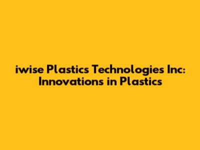 Hey guys! Ever wondered about the wizards behind some of the coolest plastic innovations? Let's dive into the world of iwise Plastics Technologies Inc, a company that's making waves in the plastics industry. We're going to explore what they do, why they're important, and how they're shaping the future of plastics. So buckle up, because this is going to be an interesting ride!