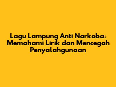 Lagu Lampung Anti Narkoba: Lirik, Makna, Dan Dampaknya