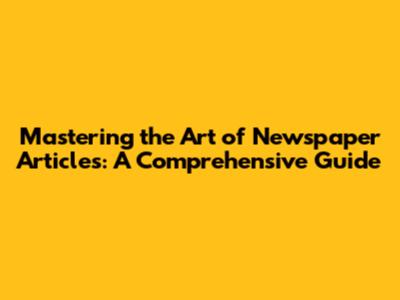 Mastering The Art Of Newspaper Articles: A Comprehensive Guide