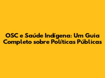 OSC E Saúde Indígena: Um Guia Completo Sobre Políticas Públicas