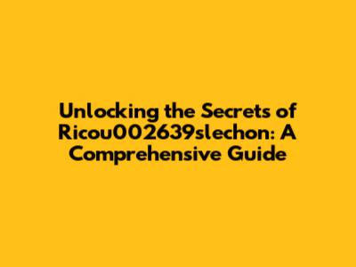 Unlocking The Secrets Of Ricou002639slechon: A Comprehensive Guide