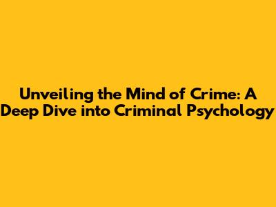 Unveiling The Mind Of Crime: A Deep Dive Into Criminal Psychology