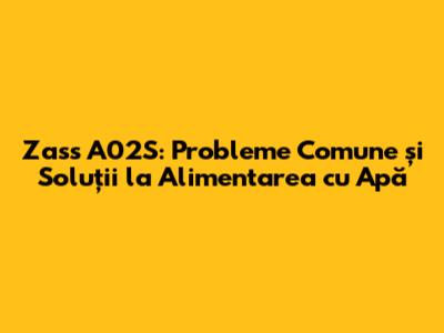 Zass A02S: Probleme Comune Și Soluții La Alimentarea Cu Apă
